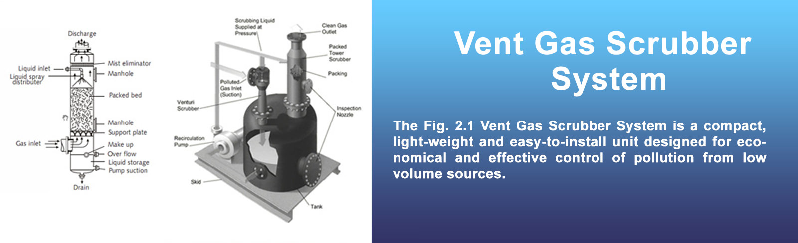 Air Poll engineering Company, is an engineering firm specializing in the design and manufacture of air pollution control equipments. Specifically, we design and manufacture jet venturi scrubbers, SOx-NOx scrubbers, high energy venturi scrubbers and packed towers. We serve solutions to Chemical, bulk pharmaceutical drugs, Food, Pulp and Paper, Power, Dye Intermediate, metal refining companies among others.